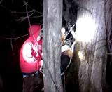 This is his first tree last night. The coon started to look at me twice. It was way up there. His second tree I couldn't shine because he was rightr in someones backdoor and the owner was hollering at me and his dogs were going crazy.