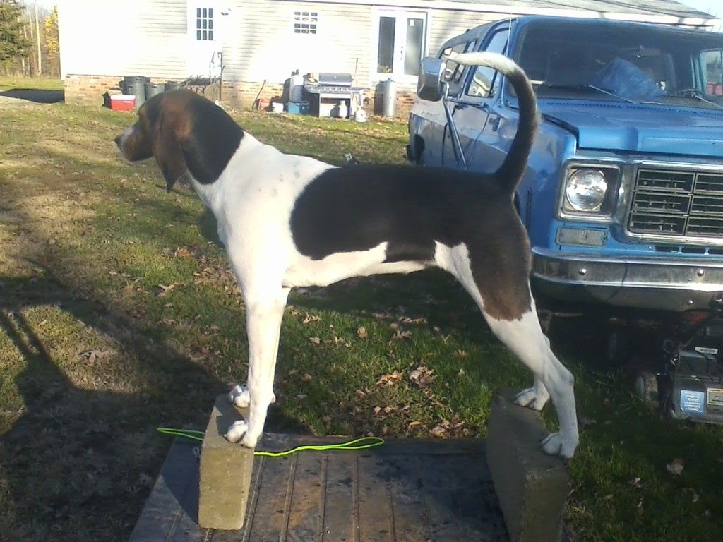 She's got way more color and better looks than expected ahaha ! Momma was all white but one spot. flatter than flat in the feet. Only thing she got from her I'd say is the size and the lack of houndy-ness in the head aha ! All the other pups are big and hound like Bravo, they're daddy.