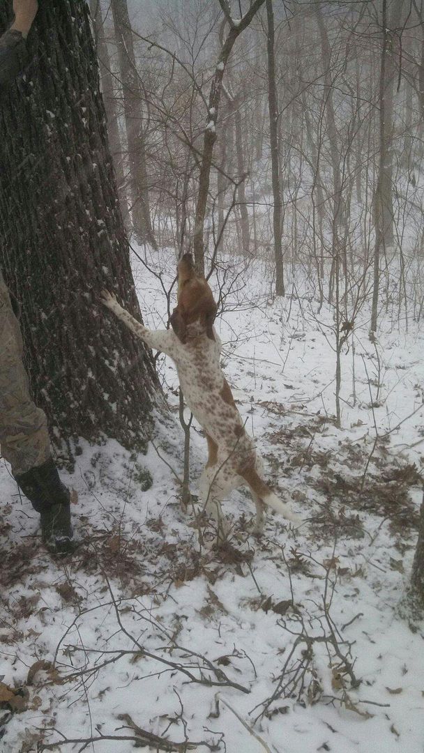 Thunder is still telling all of brown county when he trees , hes a loud hard tree dog! picture perfect on every tree.
