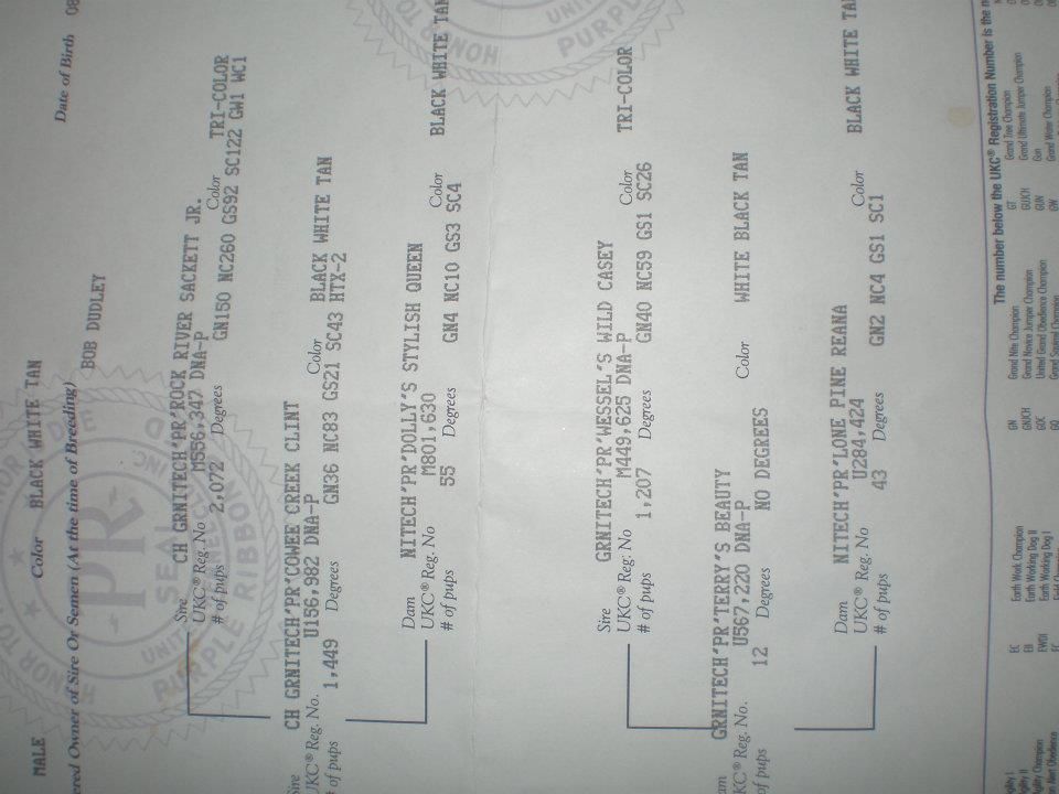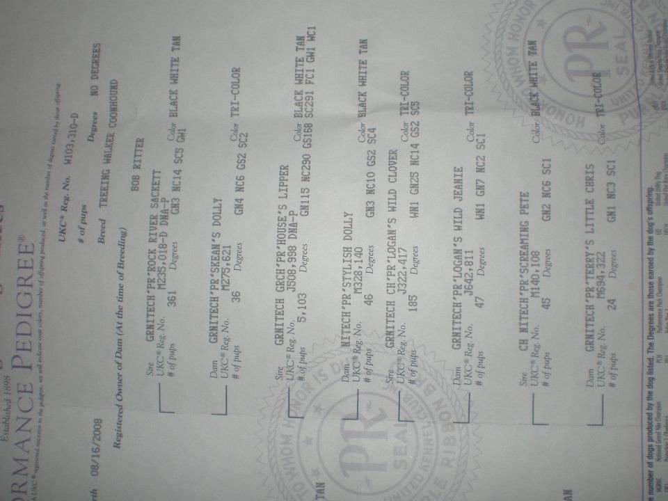 You can add Grch GrNiteCh Pr Hamlins Davie Crocket HTX to the bluetick studs. He is a performance sire and my number is 918 448 7321