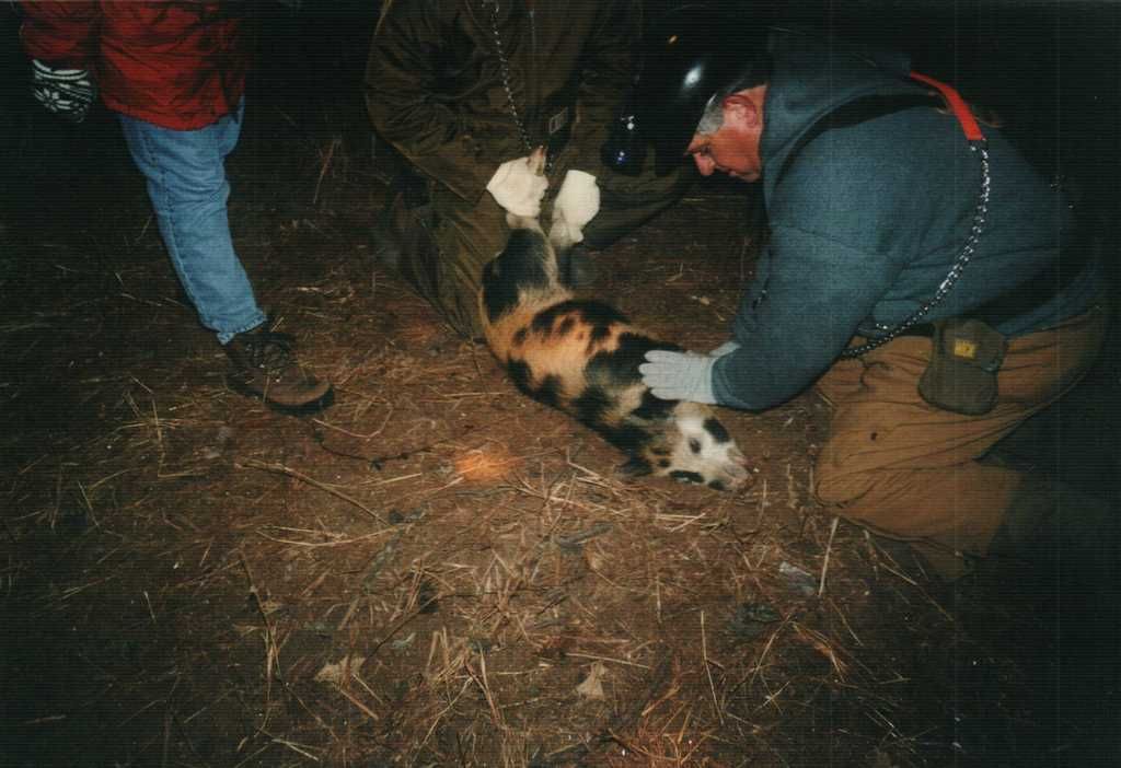 1st your dog put the pig in a hole, secondly as you can see I was holding a dog, if I was doing what you accused me of there would have been no doubt, and 3rd the ladies from Purina made Jimmy turn it loos, Good Pictures!! And good lies.