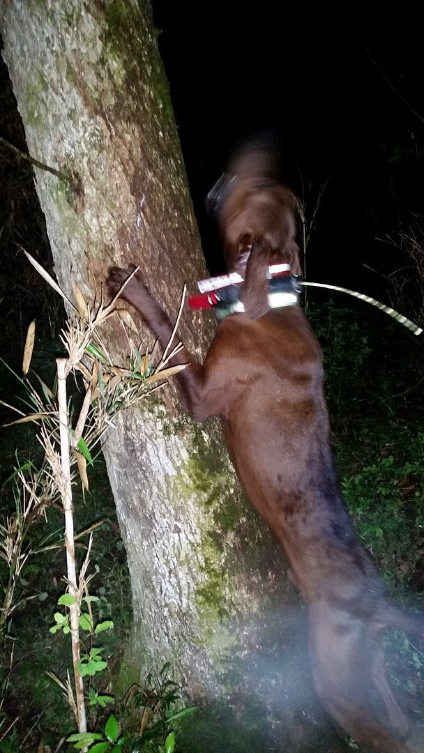Jack treed with the meat. I am so proud of how this dog has recovered from adversity after adversity, he always wants to please.