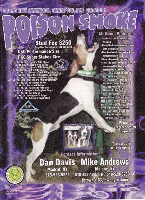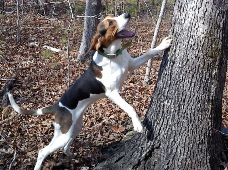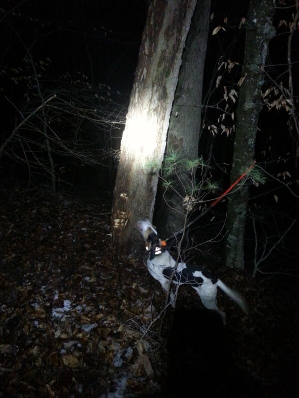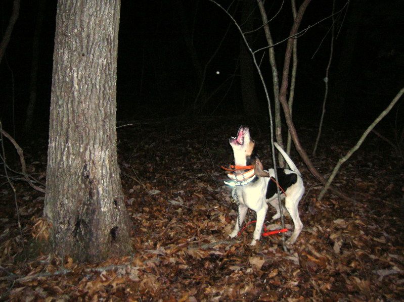 Took my Smoke/Jazzy pup out for the first time tonite with the intention of walking him around while the old dog hunted. Boy, was I fooled. He took off right off the tailgate with the old dog. The old (100% straight) dog struck about 250 yards in and ran it around the lake bank. At about 350, my pup opened, ran the track with the old dog like he had done it all his life. I said to myself, he is running the dog but at least he is running!! I was wrong about that too. They drove it 1.1 miles to a hole. When they hit the hole, both dogs hushed. The old dog came back. NO PUP! At this point I'm nervous because I didn't have a garmin on him. Hell, he didn't even have a name tag!I drove around looking for him and found him 30 minutes later 300 yards up the ridge alone in the opposite direction of where I found the old dog. Whew! was I glad to see him. I truly believe that if he had been running the old dog, he would have been with the old dog when I got him. He will have a tracker on next time I unsnap him, lol! You are right, Smoke pups are NOT afraid of the dark!