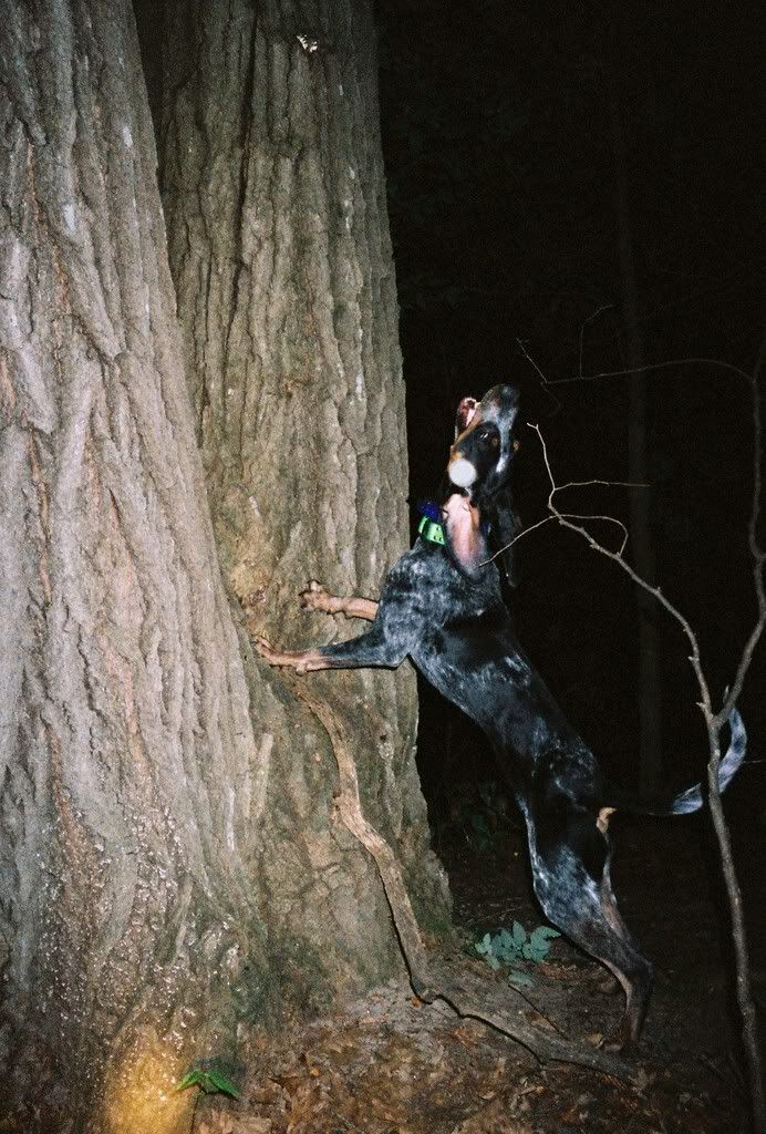 I would turn one dog then drive down the road a mile or so and turn the other then go back and get the first one I turned loose. I made 19 trees 14 had a real live raccoon (saw 18 coon, 1 triple and 2 doubles) 4 dens and 1 Iffy enough he got his ass smacked. Cube made 10 trees, 7 coon, 2 dens & iffy. Jake made 9 trees, 7 coon 2 dens. Had alot of fun! I also saw 9-10 more coon sitting up and I wasnt really looking for them.