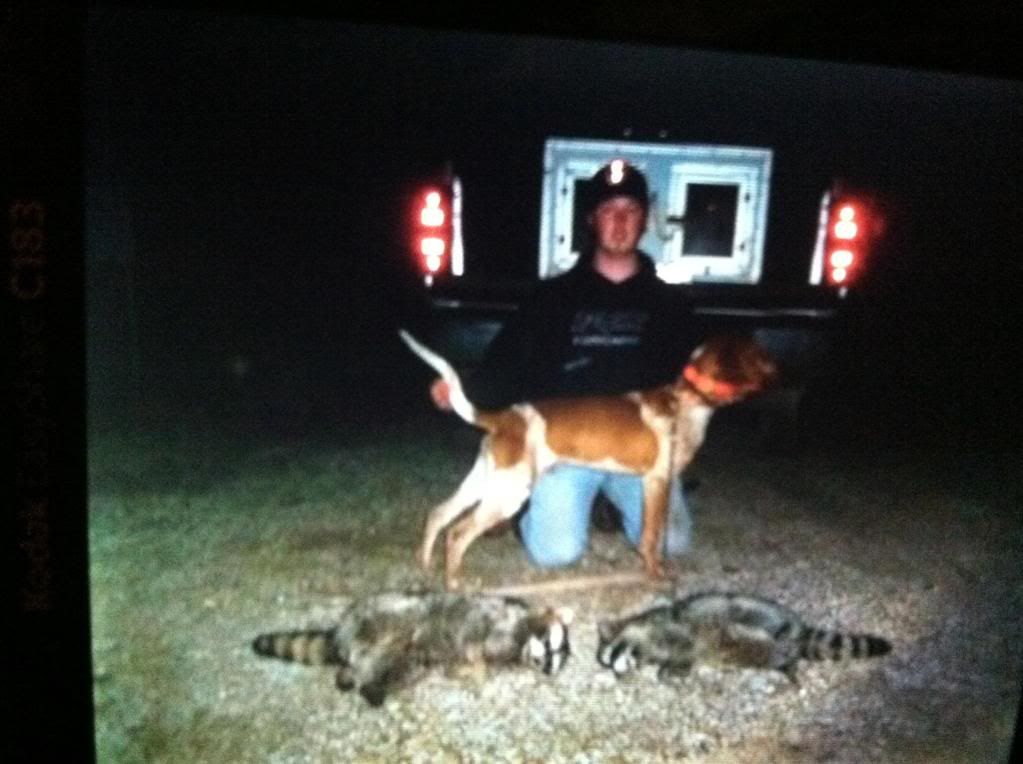 Boys iv had the pleasure of huntin with 4 pups outa tiger and iv been impressed with all 4. They arnt afraid of getin in the dark an workn a track. They start very easy and young. Nice mouths and hav all the drive in the world. I believe tiger wil mak a huge impact on the English breed and cld be an asset to anyones breeding program. Iv talk to Justin an brandon abt the other pups outa the same litter an they r good as wel. Took preacher the other night with a pretty good hound and each time he hit the tree just a few seconds behind him but on the last tree the old dog left an preacher stayed hooked. Brandons pup ringo, litter mate to preacher, did good as wel an he is gna mak a tree dog. These pups just turned 7months old and I'd say ther wil be a few of em titled by this fall. Brandon an Justin r gna hav a few litters pretty soon and I recommend anyone to get a pup. Justin and Brandon r great guys and wil treat u right. Brandon is putn a guarantee on Roxanne an tigers litter and not everyone does tht, it is a proven cross. I wil be gettin a pup from each litter an can't wait. Once again I wana thank Brandon and Justin for bein great friends an hunt buddy's, clint