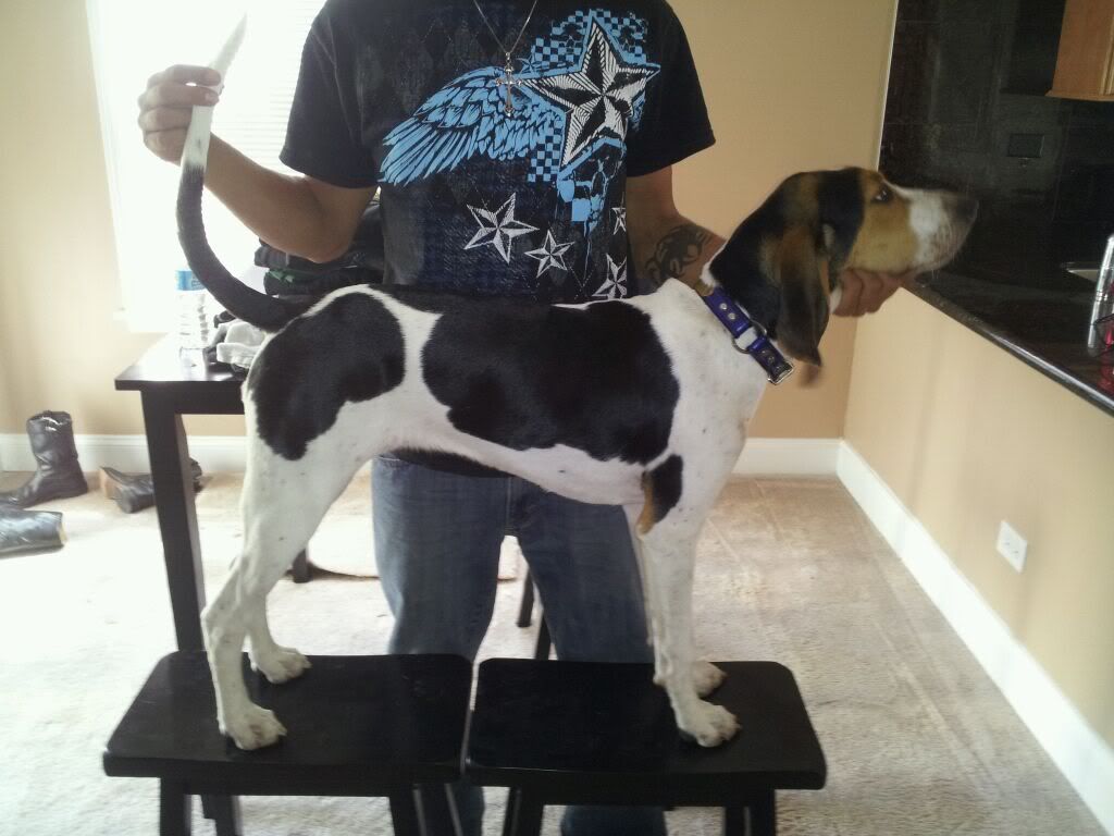TOOK HIM TO TOWN FOUR TIMES AND HE PASSED THREE TIMES I SCREWED UP ONE.Mine is 19 months old placed third at the ga. state bboa hunt reg class ,and has two HTX completed with two tries.should have a first on him but i screwed him up in another hunt wasnt his fought human error took over.nice dog ,real accurate hes out of TREE JAMMIN JADE AND CLEAN.ITS NOT GOING TO BE HARD TO WALK HIM THROUGH THE HUNTS THIS WINTER WITH THE LEAVES OFF.IF HE TREES THERES A HIGH CHANCE YOU WILL SEE RICKY RACOON.IVE HUNTED PUPS OUT OF FOUR DIFFERENT STUD DOGS IN THE LAST SIX YEARS AND HES THE ONLY ONE I GOT LEFT,DONT KNOW IF I GOT BAD PUPS OR THEY JUST DIDNT REPRODUCE,THE PUPS WERE TERRIBLE .SO, FAR THE CLEAN PUP DIDNT NEVER BACKED UP ONCE HE FIGURED OUT WHAT WE WAS DOING HE GOT BETTER EVERY TIME I TOOK HIM,AND IS GOING TO BE A LAY UP DOG TO BOOT .JUST TO LET YOU KNOW HE WAS HUNTED DIDNT SIT IN THE PEN ,SOMETIMES 20 NIGHTS STRAIGHT.THANKS.
