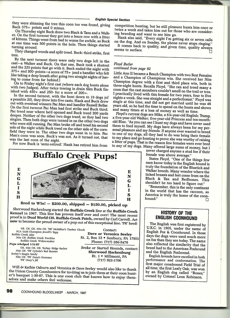 Thanks Mike , sounds like hickup is doing real good , I was wanting to go hunting with stick when Bradley Ryan had him and never got the chance , he is a goodlooking hound , John boy is out of a littermate sister to hickup and my Tea Top dog , He is doing pretty good , he likes to get split also , thats what I like about these dogs , may breed hickups mom to Tea Top soon , it worked real well on Quigley , I think it will do the same on Tea Top , I hope lol. I see you have a female on the way to Georgia , are you thinking about breeding hickup soon .