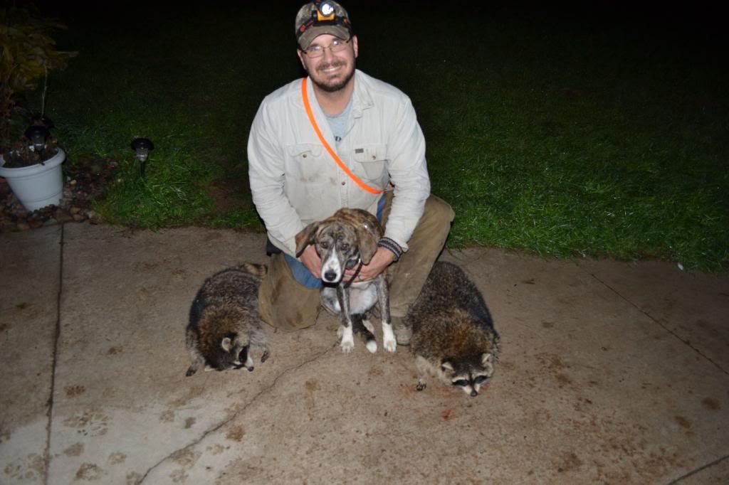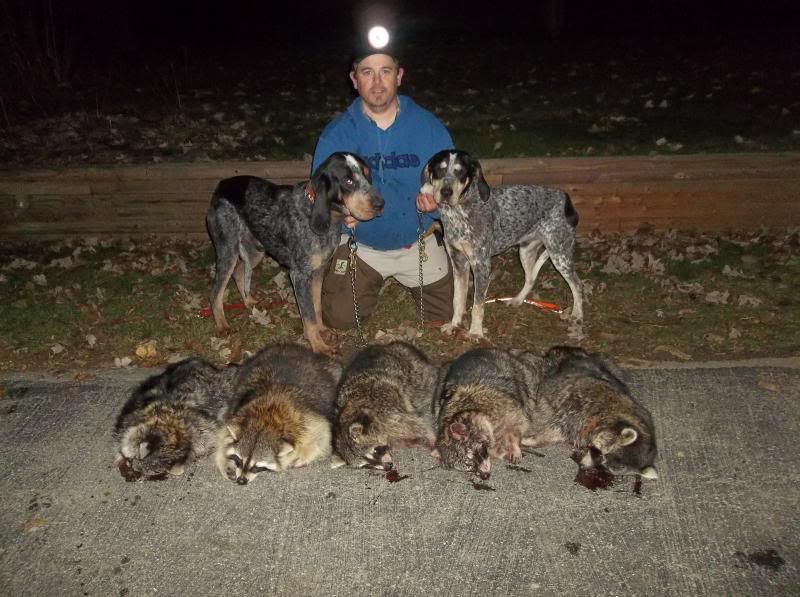 We weighed the bigger one from opening week and it was close to 31lbs. Not sure on the others, we've been getting a work out hauling the darn things back to the truck (landowner doesn't want carcass' left in the woods) The 2 dogs have been working together quite well, the ticks have been a concern as of the last week. Finding them on the dogs as well as ourselves. The last picture was from a spot that I've taken a couple of friends in only a few times. It's a massive section and with the corn still up in there its like a buffet for the coon. Once the snow gets real good its darn nearly impossible to even get in there with a tractor. So we try to hunt it all the way through. We made it 1/4 of the way and got those 5 and neither one of us felt like carrying any more of them back to the truck! Probably should weigh them but oh well, there not monsters but they sure make a "thud" when they hit the ground.