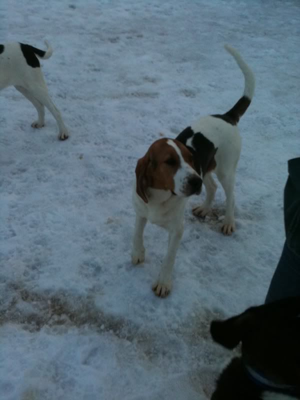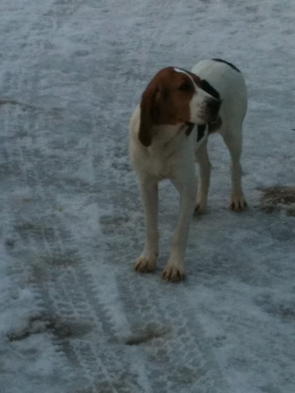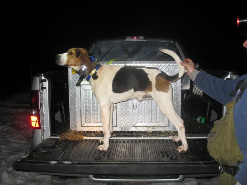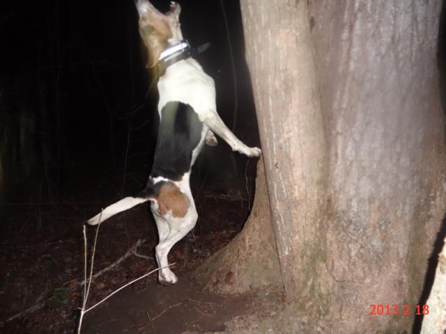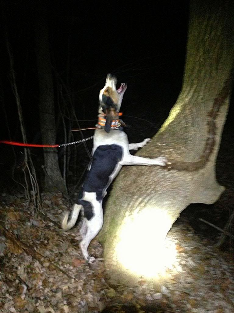 Saturday night we came home from walker days instead of hunting and took Swag. On the first drop he went 0.8 miles and treed by himself in a huge den. On the second drop he treed in another big den split from the other dogs about 100 yards. He's showing he might have the tools to make a nice one.