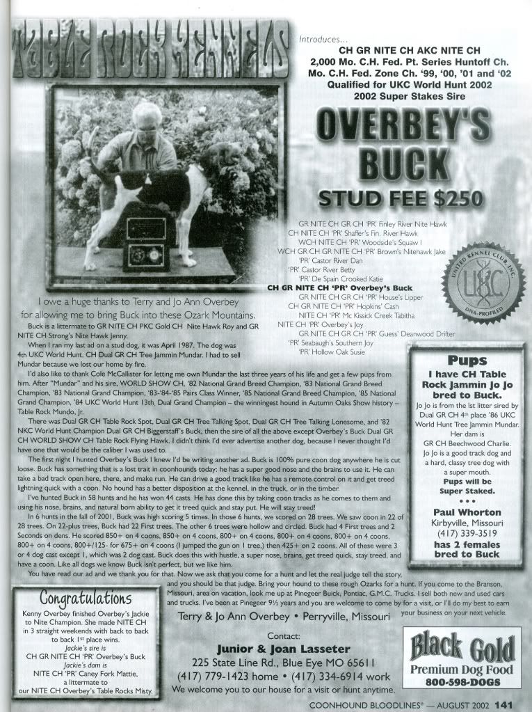 He is the only dog to be Gr. Nt. Ch. when they won Nat. Gr. Ch. at Autumn Oak.and he is the only Nat. gr. Show ch to place in the top 20 at U.K.C. World Hunt.