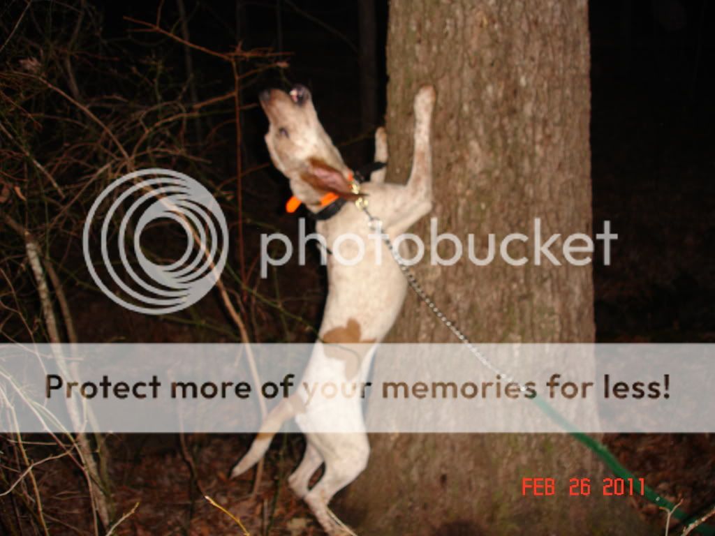 Thanks for the picture.She looks real good on that tree.There are 2 males from that litter in Arkansas that are doing good also,and I know that the male belonging to Mr.Regan in Ohio sounds impressive too.There are others in that litter that Larry could tell you about.I know he is making that cross again with GRCHGRNITECH Viper,probably this weekend!(GRCHGRNITECH Razor is the Sire of the mother,CHNITECH Run 'Em Up Ruby.) Give Larry a call on this litter,or if you can't reach him,call me.