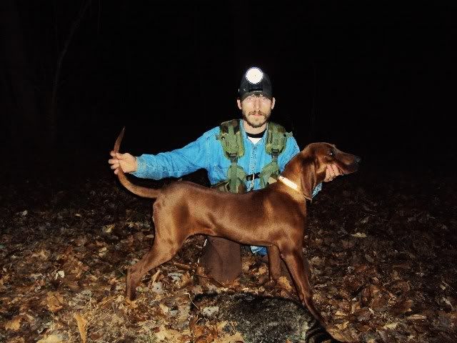 Andy Sloan hunted his new female Dixie this weekend, and she did a good job. She's only been at his house a week and she ventured out a bit farther every time she got away from us. The first night she was went about 85 yards and disappeared into the timber for a bit. Can't ask much more than that for her first time in the timber with you.