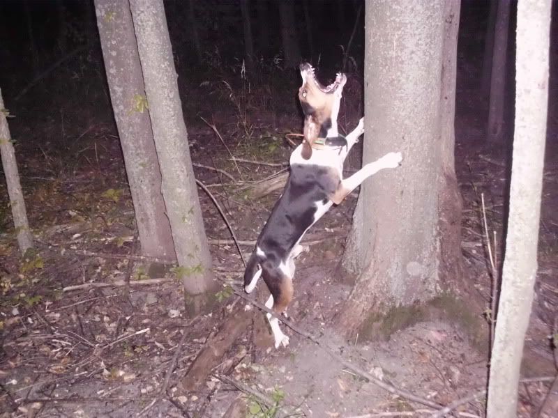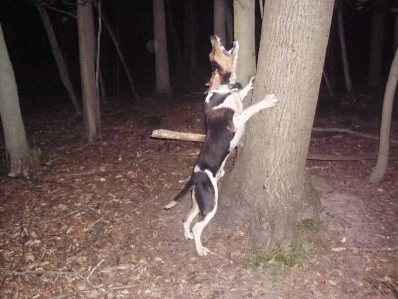 Had good reports on a couple of the cross-bred pups off Trip and Dolly. Thunder, owned by Justin Thume of Gladwin, MI, treed his first coon alone last night. I know he's treed several turned loose but I believe this is the first time he's been cast alone. His littermate sister, owned by Mike Hopkins, saw her first coon yesterday and the report I got was she's coon crazy and loud and had no trouble trailing and treeing. I signed a paper for lost puppy papers for a pup in Ohio that is being paid up and SS'd so I'm guessing he's showing his owner something. There are five still alive out of the seven she had. I haven't heard anything from the two in KY. I am pretty sure the pup in OH is going to be single registered as a black and tan in UKC. That was what the lady from the other registry told me, did not speak to his owner.