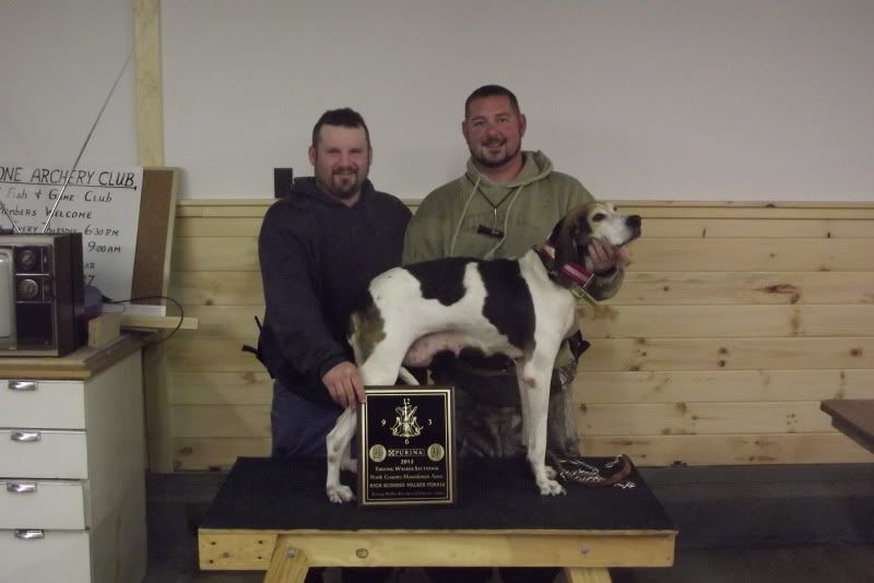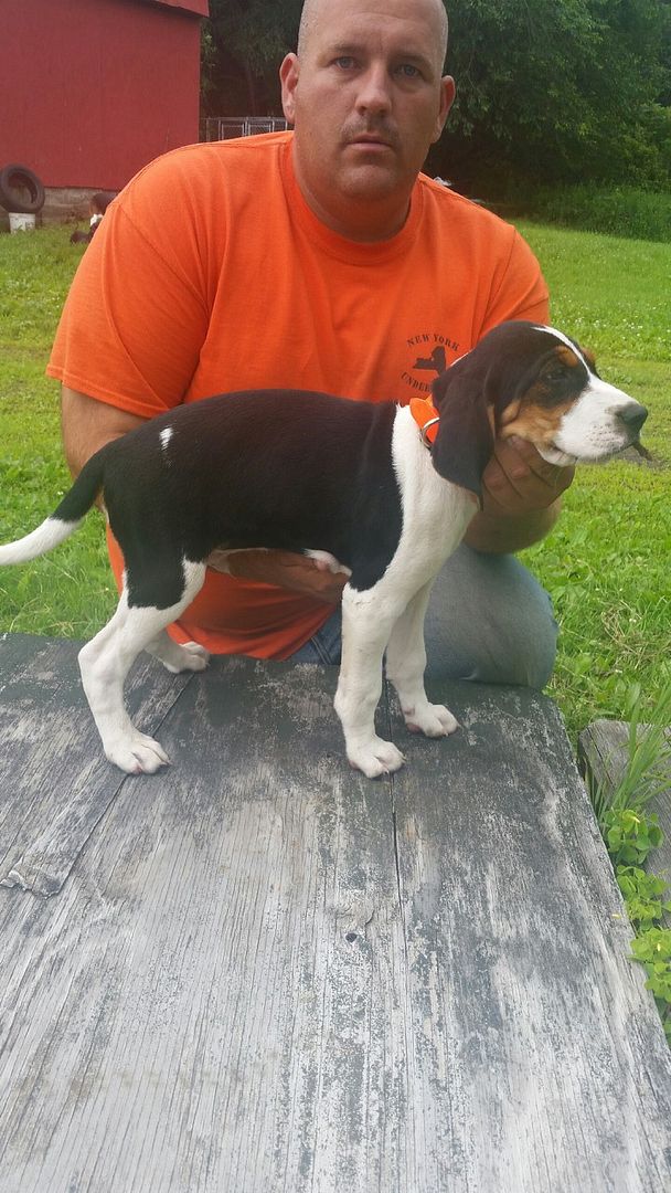 Swag comes from two coondogs. He is a big hunting independent loner that trees coons. When you turn him loose, you will pull him off a tree somewhere. He's a big 85lb dog with a mouth to match his size. He finished the 2014 VA PKC state race #8. He has over 35 cast wins to his credit and he just turned three.