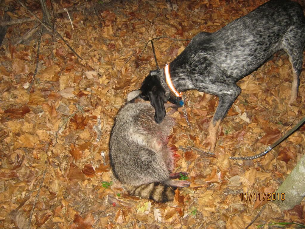 Grnitech Grch Grwch Mad Dog Psyco Talk to em Toby (sire and dam both quad grands, Finished to nitech and BBCHA, BBOA high scoring blue male 2011 Autumn Oaks, 2012 and 2013 Bluetick Days King of Water, 2014 BBOA youth nationals King of Water and Champion male, 2014 Alabama Hall of fame hunt King of Water, 2014 Bluetick Days Blue Hunt 2nd runner up, 3 nite ch wins over 1000 points) owned with Robbie & Lisa Brooks