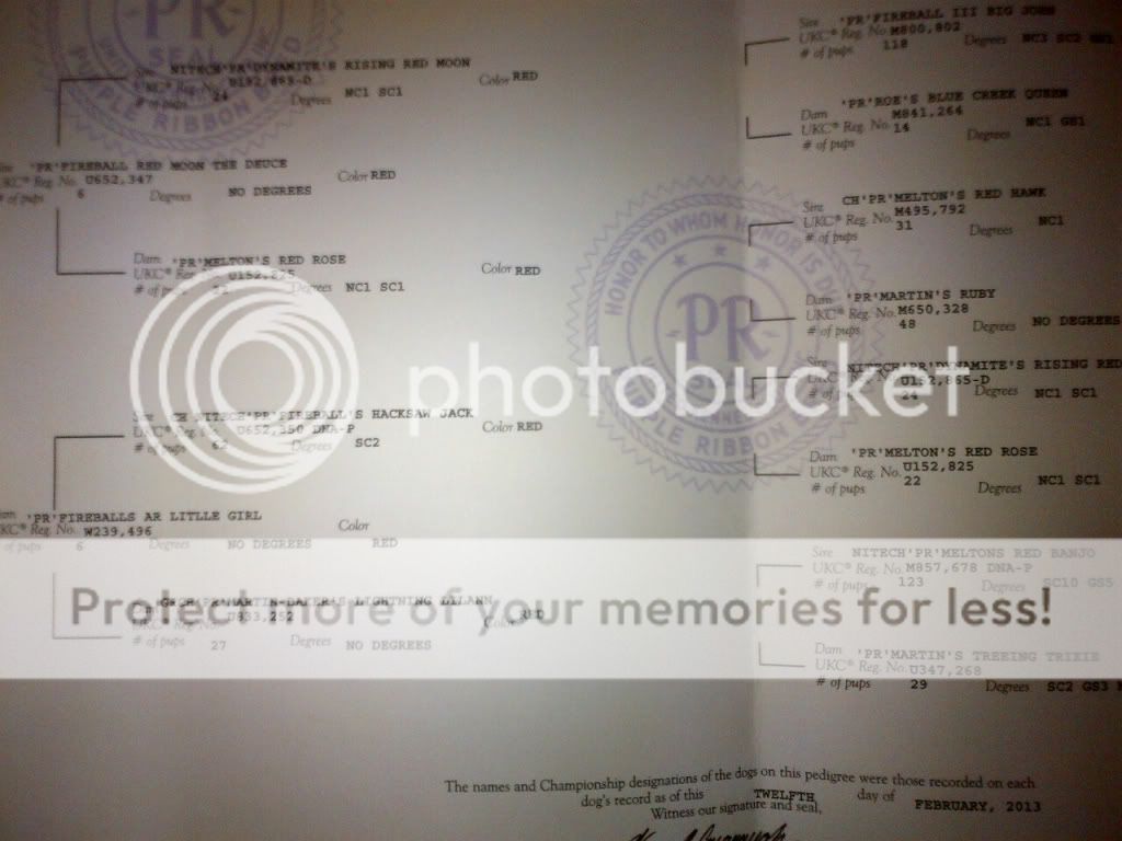 I have read advertisements where people say they have bred granddaughter to a grandson of old so-and-so and the pups will have 50% of his blood. These pups infact would only be slightly over 3% inbred. Inbreeding is expressed as Inbreeding coefficents which are calculated by the formula Fx=(1/2)n-1(1Fa). These coefficients are only statistical values acquired by the number of generations the animal in question is removed from its common ancestor. These coeffients are theoretical values assuming every gene on every chromosome has equally 1/2 chance being passed on to the next generation.