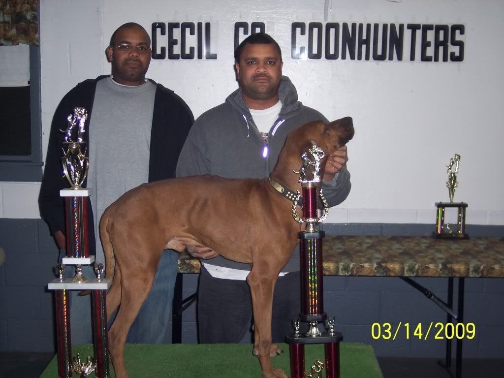NtCh GrCh "PR" Dan Langston (Has 2 wins towards GrNtCh in the hunts) ( 10yr old owner asked for me to bring him back to his home) (wouldn't sell) (Ch D8 Dozer (bear hound from all coondog stock, out of my breeding) x NtCh Music/ Kitty) (33% Fireball thru heavy line breeding the highest GrNtCh Fireball blooded hound alive, who is hunt titled )