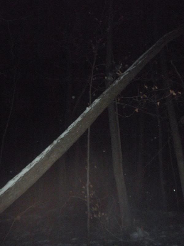 Tonight they fell treed with no track bark on a hollow tree that was broke off 10 ft up. There was a small split all the way up, and I could see at least 2 coon in there at about eye level. Tramp and Dot were both in beaver mode so I figured there had to be one close to their sniffers. Next place we went to the dogs finally took a track farther than 50 feet, but ended up in a bulldozer pile. Walked them away, they went back to the bulldozer pile, but past it this time. They pushed a track to a coon hotel. Tree was very impressive in size, so I snapped a pic. Wish I had a pic of some coon, but I guess they'll be there for next time...