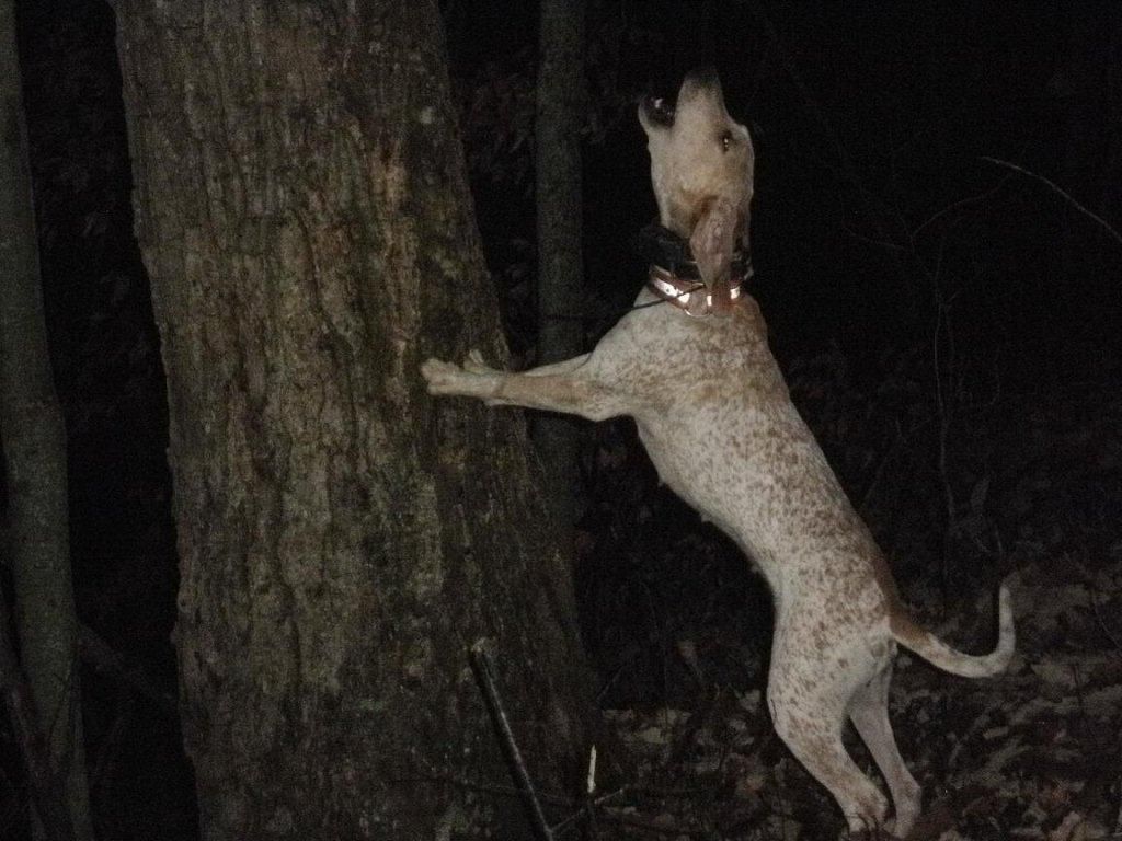 Went to the bigger hollows thursday night, cut loose at about 6:30 and treed 5 times in 2 and half hours, thats not bad considering where I was hunting. Roxy did her part and put an end to what she opened on even though she did not come across anything that sounded too exciting. Hollows are funny, you have to walk around things to get where you need to go. At one time I walked half mile in 30 minutes to get to her and was only 200 yards from where I was 30 minutes before, just across the hollow. I love going in places like that just to see if she can handle all the stuff that go along with that kind of terrain. The dead falls are the things I worry about the most but they will learn how to handle those if you put them in there enough. I shot some coon, got pretty wet, my knees were sore from the 11 hour work day and my hunt, but what a great time I had. Happy hunting!
