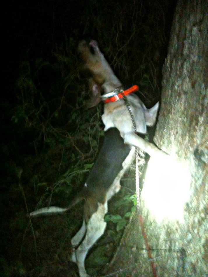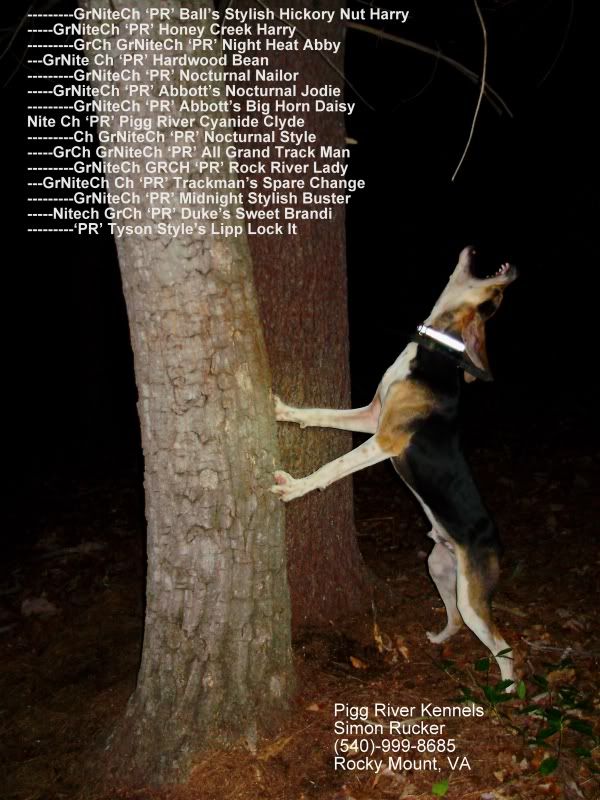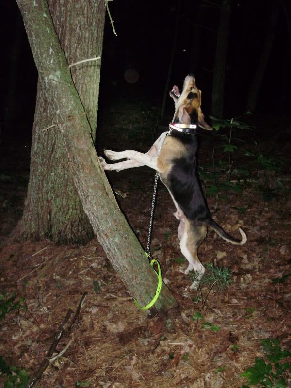 I just wanted to let you all know that Clyde picked up another 2nd place last night. On the second drop, he got split by himself with the only coon we saw all night and ended up with 225+, 238 1/2 circle and no minus and . All he needs is a 1st and he will be a Nite Champion. He turns 2 in June.
