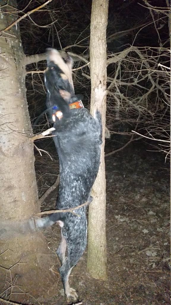 PIAZON AND BILL TUCKERS ANNIE FEMALE, THEY TREED FIRST TIME SCENT WAS HUNG UP OVER THERE HEAD, FUTURE GIRL FRIENDS FOR BOOMER OR BOOMER 2, IF THEY MAKE THE RIGHT KIND, AND THE ANNIE FEMALE IS HERE WAITING TO BE BRED TO BOOM.