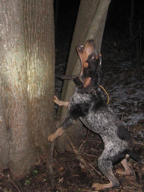 Unfortunately I couldn't get a good picture of Bentley and Bree together, but they did do a nice job pushing a hard running boar up a tree. To be very honest, I thought they decided to see if they could catch "Ol Flag". Tis the season of the hard runners....