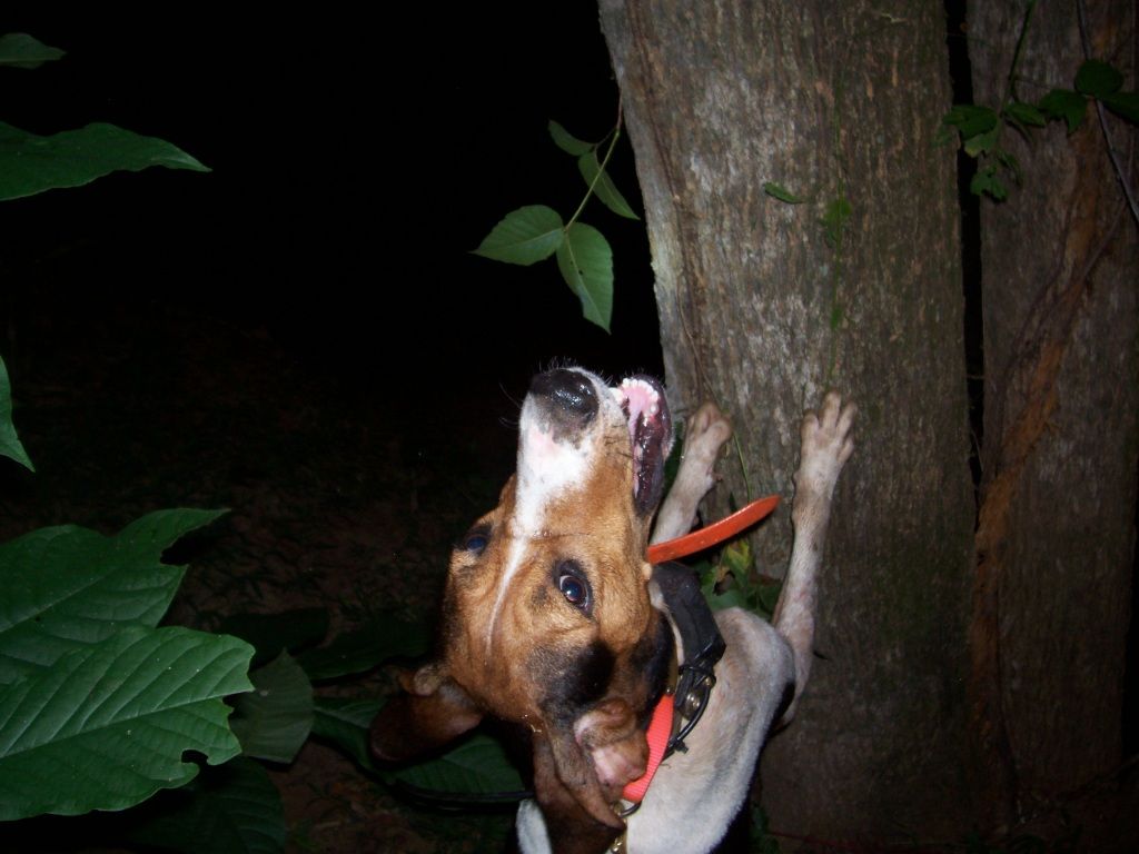 Last night Clyde managed to tree three coons by himself and earned his 1st win towards Grand at the Sherwill, VA RQE. He is now qualified for the 2012 UKC World Championship!!!!!!!!!!!