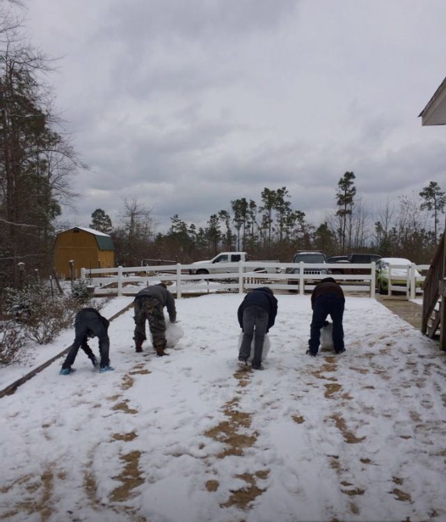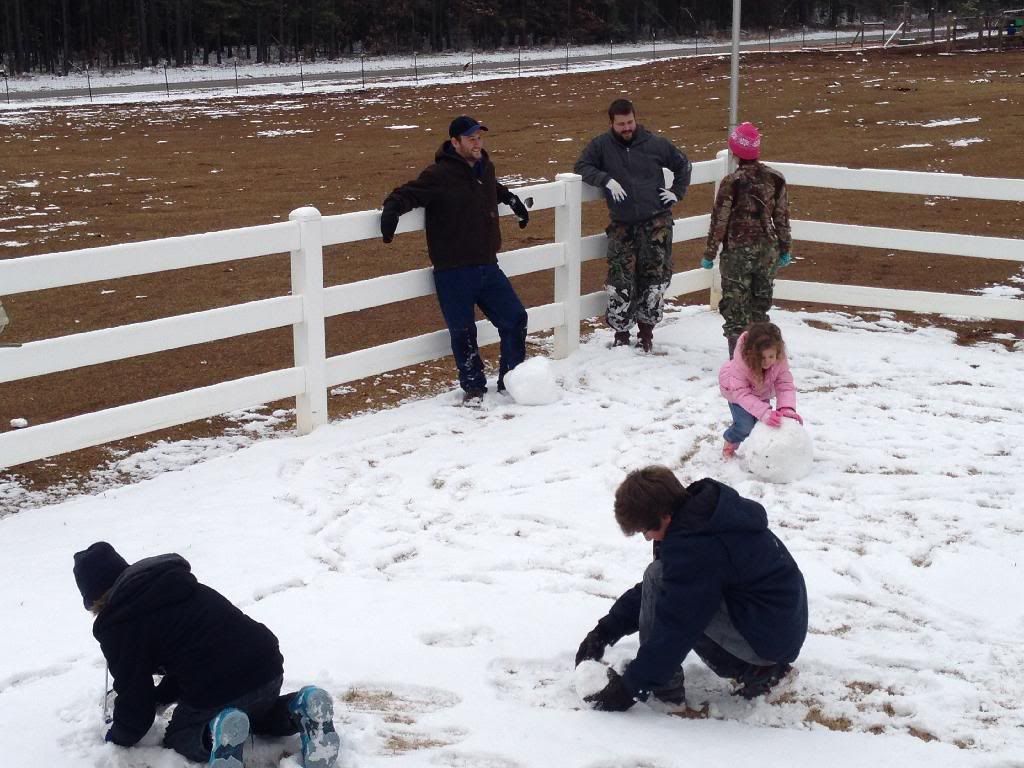 Hahahahaha .... They all worked hard to build the snow man !!!
