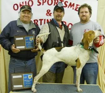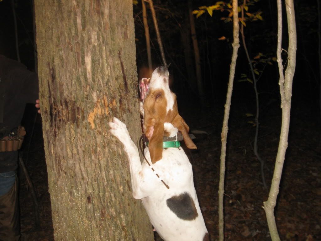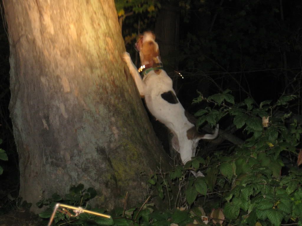 i had this female here for three months. nasty is off of BIG "D" and a female by the name of MINNIE. MINNIE is off of PETER'S STYLISH FERRIS X CARMIN ELECTRA. FERRIS is off of STYLISH LIPPER X CLEARFORK KAW RIVER TRAMP. and CARMIN was off of WILD CLYDE. in this picture NASTY won the nite champion at the OHIO STATE CHAMPIONSHIP friday nite with 1050+ and saturday nite with 950+, 2000+ is'nt bad for back to back nites for a pup. she's a first strike dog, she gets second and thirds as well, she is'nt a automatic or babbler, and she will get those first trees with the meat. she has just turned two years old with four wins towards grand nite, she should be finished when she's entered in her next nite hunt.