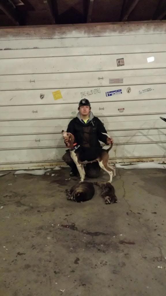 went out after mid-night treed a boar 1st drop, 2nd drop caught a boar on the ground, 3rd drop treed another boar, and last drop ran one cross country and put it in a old abandon house, called it a night. night before made 2 drops, treed a boar and made a den. not seeing the coon crossing roads like in the past, probably guys snaring them out of the road tile be my guess. been seeing some hunters but not hearing any dogs, but it has been windy!
