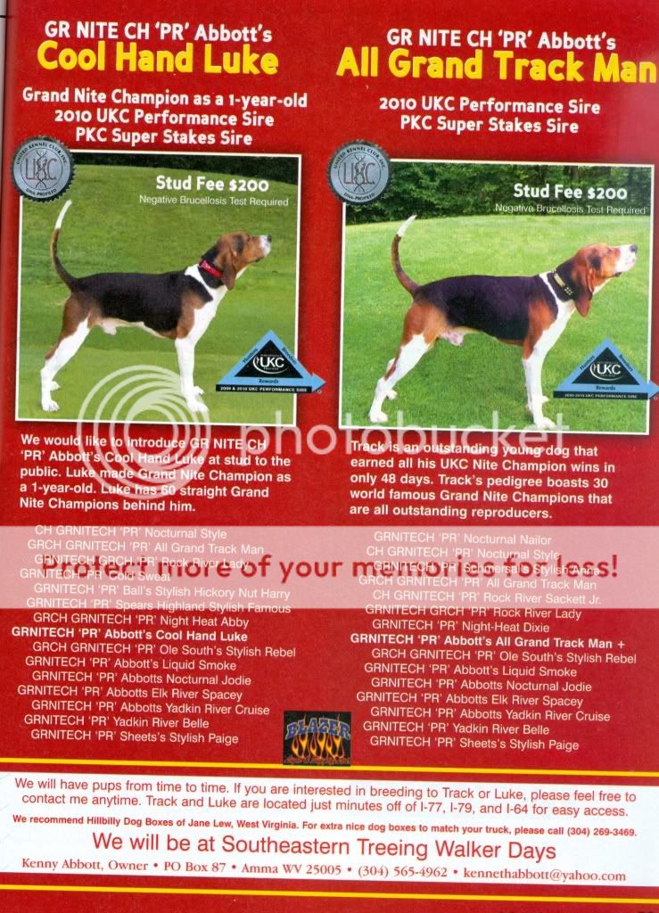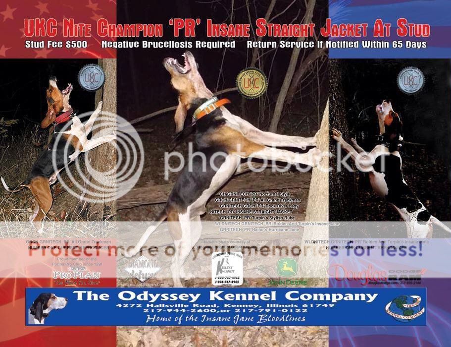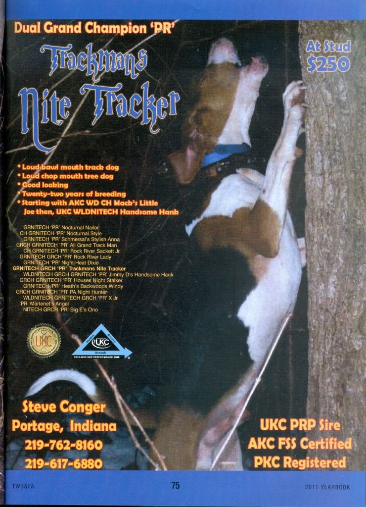 My dogs all grand outta Peppermint Dixie - outta Trackman and Peppermint Dixie ,sire Electric Shock who is out of Harry and Mable consistantly throws independent, track driving coondogs .Don't advertise but breed a few select females...GNITECH PKC Ch Redneck Mafia