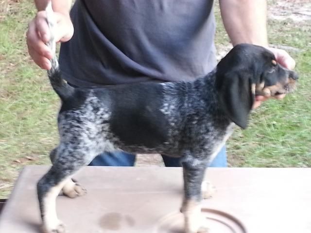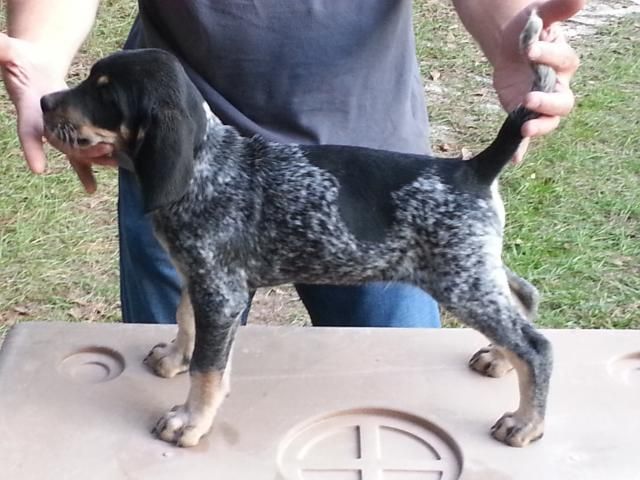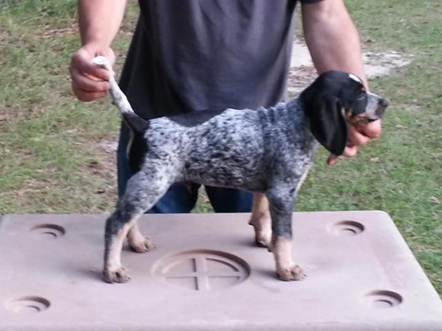 For those of u that haven't seen or heard of Duke, the sire. Duke is a 90-95lbs dog, super personality that will make your day day in and day out. He lives in the house and is prolly the beat house dog ya could ask for. Grab him from the pillow in the house and take him out and tree yourself several coon and go right back to the pillow. He's a NTCH with 2 wins, has 1 HTx pass so far, is a GRCH with several large event wins including CHs and GRCHs and king of show at bboa bluetick days. He's a bawl mouth, does is not a dog that opens a ton on the ground, not silent at all just opens as needed. Got a locate a mile long that will make the hair on ur neck stand right up! Then rolls into a steady bawl to a slight bawl/chop on the tree and I promise ya ain't gonna have a problem hearin him near or far! Is a pretty confident lay-up dog, and spends more time with his head in the air suckin in th thermals than anything and has mastered it pretty well as did most of his ancestors. I got a really good feeling bout these pups and their nature ability to get er done horizontal and vertical! I recommend these pups to anyone wanting a natural pleaser and coon dog!